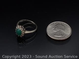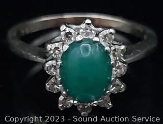 Lot #0014f: 14K White Gold, Jadeite & Diamond Ring S:6.5