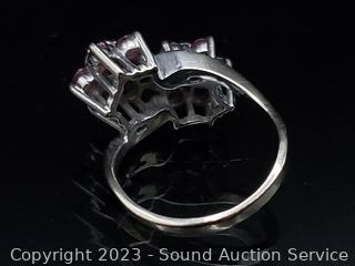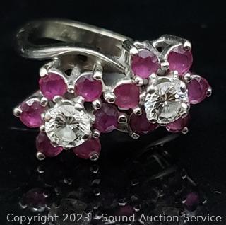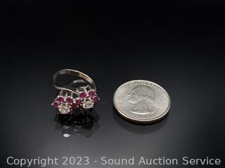 Lot #0010f: 14K White Gold, Ruby & Diamond Ring S:6.5