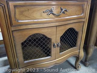 Lot Details: Single drawer with lower cabinets, solid wood construction, dovetail joinery. A few minor scuffs, overall in great condition. 24" H x 23" W x 16" D. Matches the next few lots.