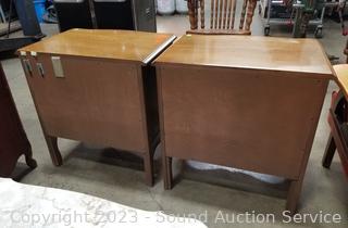 Lot #0012: 2 Maple? Serpentine Single Drawer Nightstands