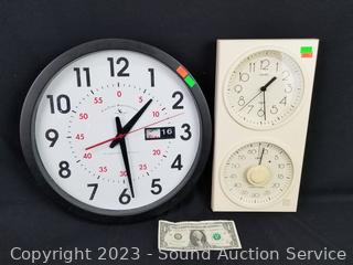 Lot Details: Seiko Quartz w/Timer 13.5" x 7", American Timekeeping Co. 14" dia.