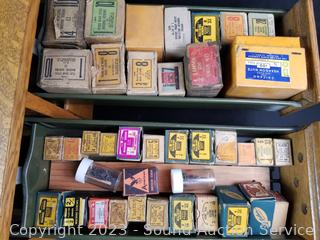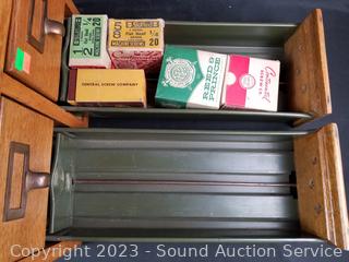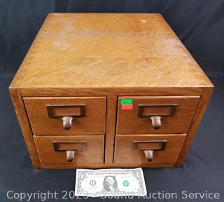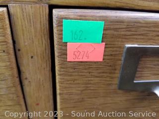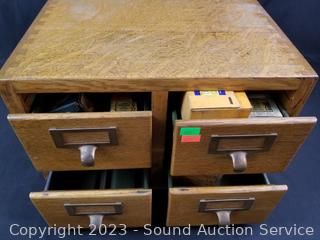 Lot #0162: Oak 4 Drawer Index Card Organizer Full of Hardware