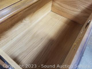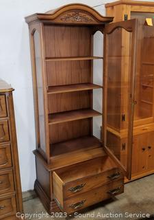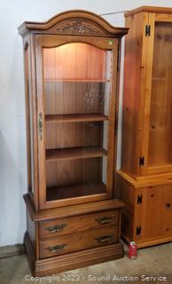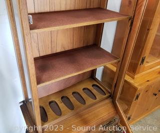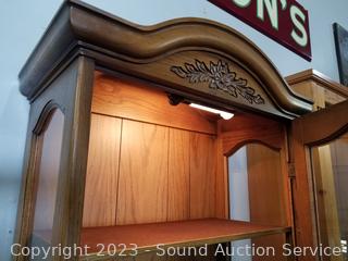 Lot #0030: Oak Finish Lighted Curio Cabinet