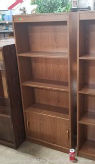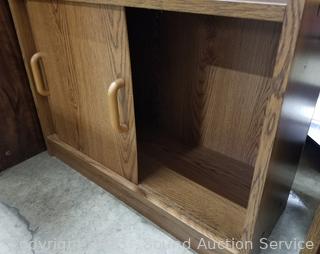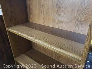 Lot #0028: Oak Wood Grain Finish 3-Tier Shelf w/Lower Cabinet
