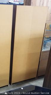 Lot Details: Particle board construction with oak finish. 59" H x 24" W x 9.5" D. See on screw hole, don't see any other major issues.