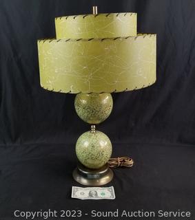 Lot #0077: Retro Green / Gold 26" Table Lamp - Works