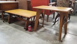Lot Details: 13" H x 36" x 20" & 21" H x 24" x 14.5". Some scuffs & wear to finish. In good condition. Wagon wheel supports.