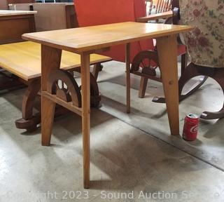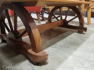 Lot #0021: Solid Oak Wagon Wheel Coffee & Accent Table