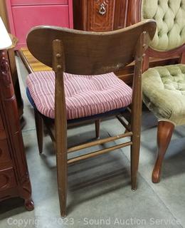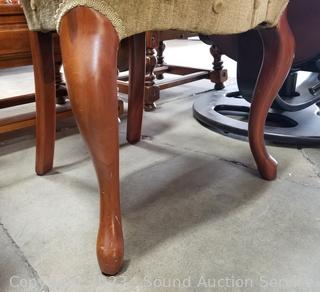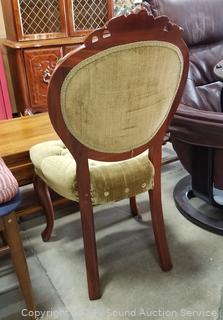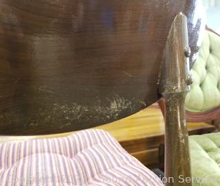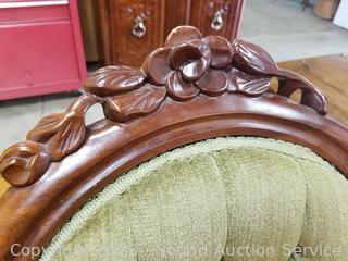 Lot Details: 33" H x 16" W x 18" D & 38" H x 19" W x 18" to seat. Some scuffs and wear to finish, Victorian chair in better condition then the other chair, by Capitol Victorian, mahogany construction.