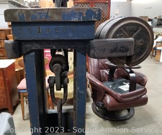 Lot Details: Serial E514887. Comes with some weights. Unsure how to use it properly to zero it out, but appears to be functional. 56" H x 50" L x 28" W.