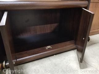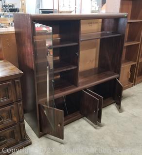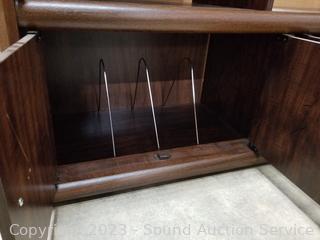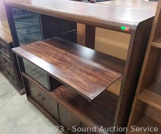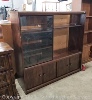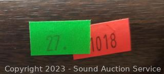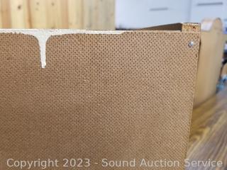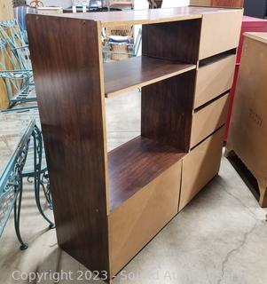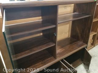 Lot Details: Particle board construction, wood grain finish, a few minor scuffs, don't see any major issues. 48" H x 49" W x 16" D.