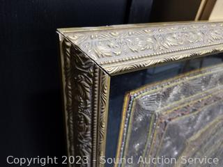 Lot #0026: Gold Gilt Framed Handcrafted Mandala Tapestry