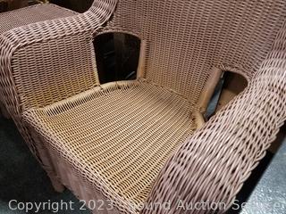 Lot #0009: Mulberry Rattan Wove Patio Chair & Table Set