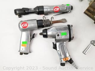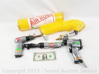 Lot #0209: 3 Pneumatic Tools & 2 3/8" 25ft Coil Hoses