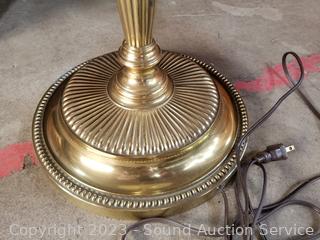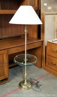 Lot #0226: Brass Finish Glass Side Table Floor Lamp