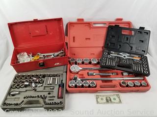 Lot #0210: Tap & Die, Socket Sets, Toll Box w/Some Tools