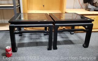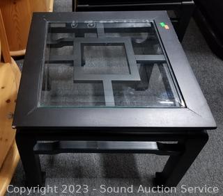 Lot #0007: 2 Black Finish Glass Top Side Tables
