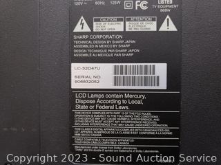 Lot #0189r: Aquos 32" Liquid Crystal TV w/Stand - Works