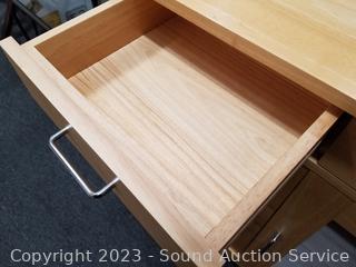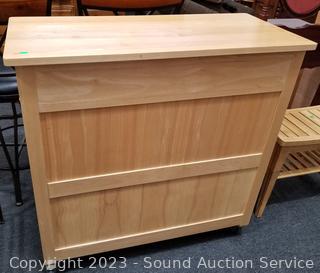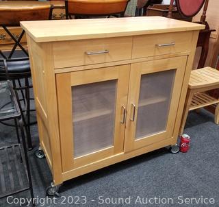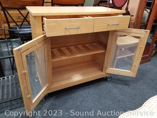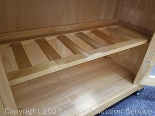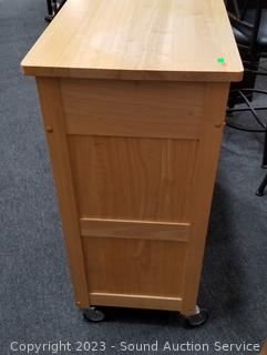 Lot #0032: Blonde Finish Rolling Kitchen Island Cabinet