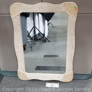 Lot #0026h: Pier-1 Ivory Wicker Framed Mirror