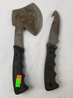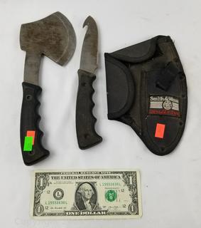 Lot #0228: Smith & Wesson Bullseye Knife & Hatchet w/Sheathe