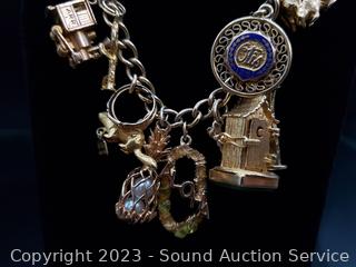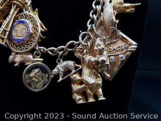 Lot #0003f: 14K Gold Bracelet w/10 & 14K Gold Charms