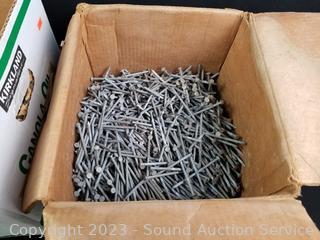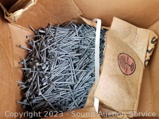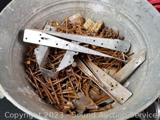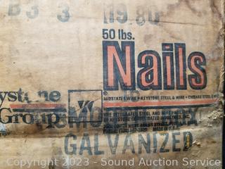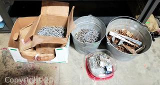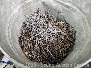 Lot Details: Various size nails, up to 3.5" long. 10" H x 11.5" dia & 9" H x 14" dia.