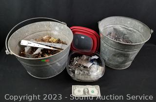 Lot #0086: 2 Galvanized Pails w/Various Nails & Hardware
