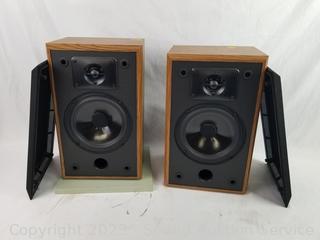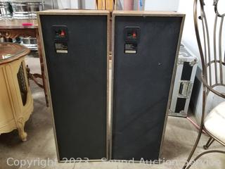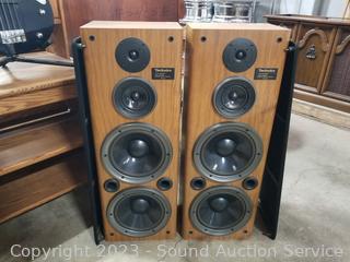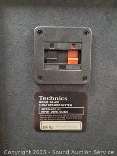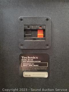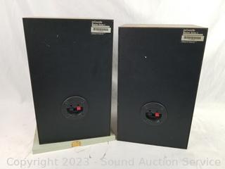 Lot Details: One large speaker has a small chip on bottom, one small speaker has been glued to plank. Polk Monitor Series 2 & Technics Model SB-A32. 14" H x 8.5" x 7.5" & 35.5" H x 12.5" x 10.5".