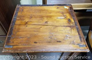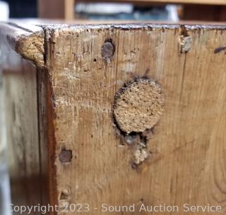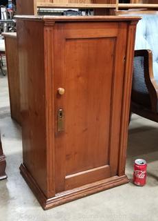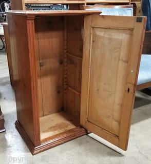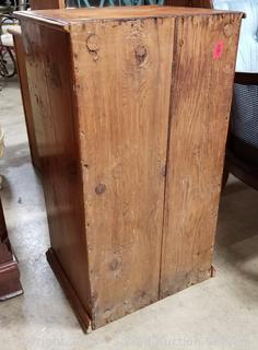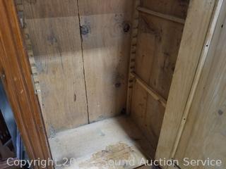 Lot Details: No hardware for lock, Looks very old, has rails for 2 shelves but no shelves. 34.5" H x 17.5" W x 15" D.