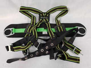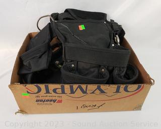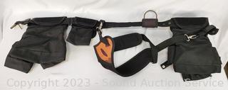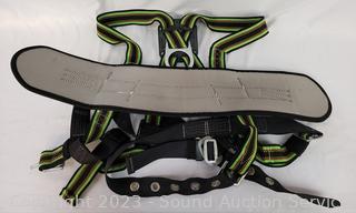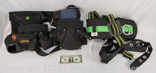 Lot Details: Don't see a label on harness for date & regulations. Tool bag has signs of wear from use, has a shoulder strap.