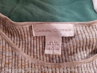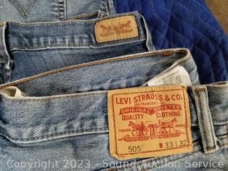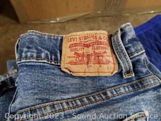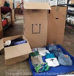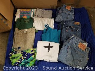 Lot Details: Mostly women's, some men's. Jeans, shirts, sweaters, swim trunks, leggings, sleepwear, robes, t-shirts. Sizes, small, medium, large, etc.