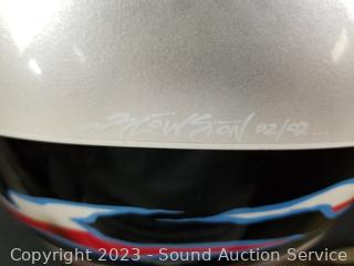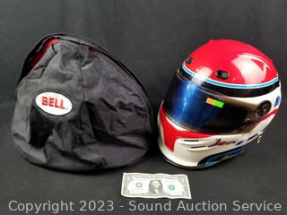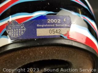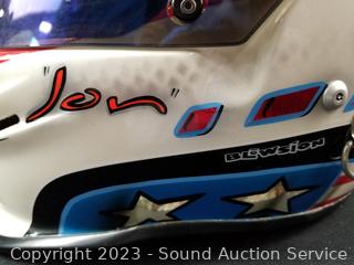 Lot Details: Full face. Don't see a size. Some scuffs, wear to finish, signs of use. Comes with storage bag. Consignor said it was custom painted, does not remember size.