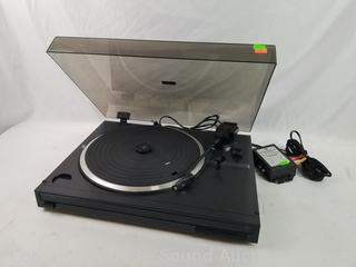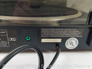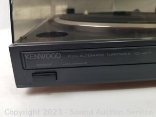 Lot Details: Kenwood Full Automatic KD-491F Turntable, has power, belt not attached, motor is working, otherwise untested. Yamaha Natural Sound AV Receiver HTR-6230, has power, appears to be functioning as intended, tested CD in using surround out, cord cut and spliced with another cord, comes with remote.