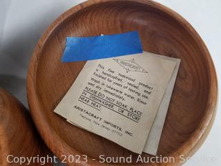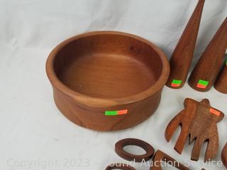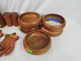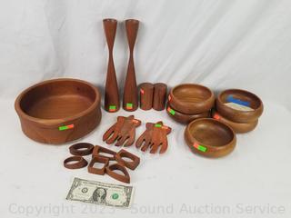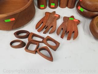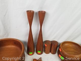 Lot Details: Salt & Pepper shakers, candle holders, salad bowl, bowls, napkin rings, salad tongs. By Aristacraft Imports.