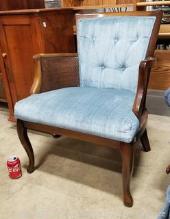 Lot #0027: Vtg. Upholstered Cane Side Accent Chair