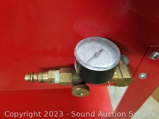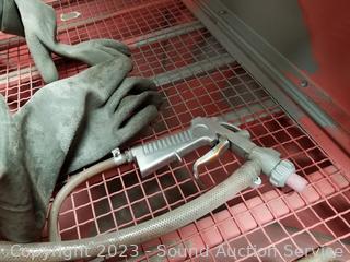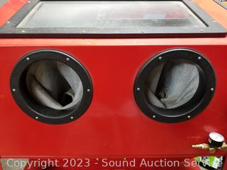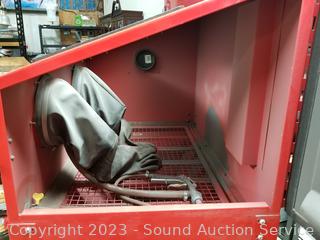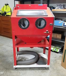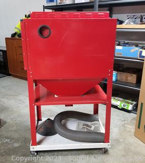 Lot Details: Light works, otherwise untested. Does not come with medium. On casters for easier movement. 61" H x 35" W x 23" D. Comes with 4" duct & sprayer.