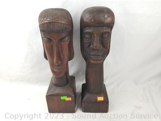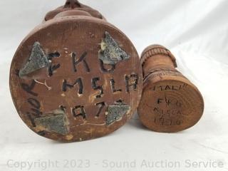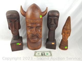 Lot #0111: 4 Signed Carved Wood Sculptures