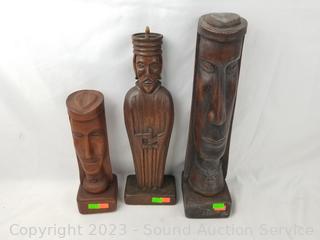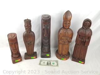 Lot #0110: 5 Signed Carved Wood Sculptures