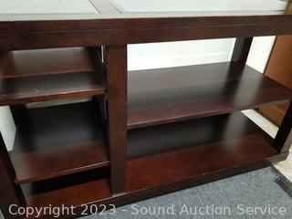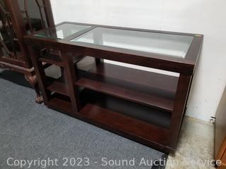 Lot #0030: Beveled Glass Top Dark Finish Hall/Media Console