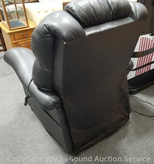 Lot #0004j: Black Pleather Power Massaging/Heat/Lift Recliner