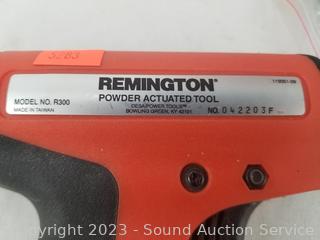 Lot Details: Powder shot fastener tool comes with pack of loads & fasteners, Model R300. Air riveter #93458. Air riveter appears to be functioning as intended, power shot tool untested.