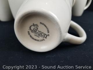 Lot Details: 4pc service for 4 dish set, 11 Gibson mugs.