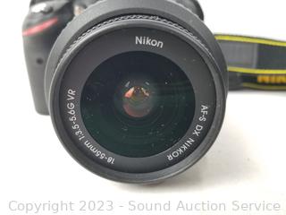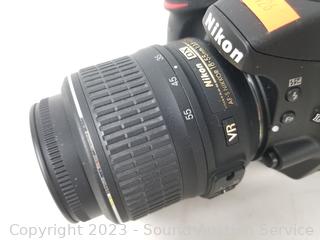 Lot Details: Nikon AF-S Nikkor 18-55mm 1:3,5-5.6 lens, AF-S Nikkor 55-200mm 1:4.5-5.6 lens, battery charger, manual, transfer cables, case. Camera has power, no SD card.