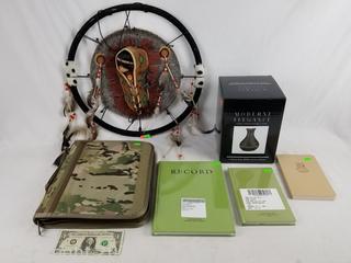Lot Details: Dream catcher, Aroma Diffuser, All Weather Field Book, Record, Journal Books, Field Planner. Several are sealed.