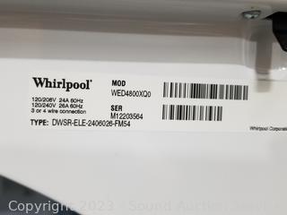 Lot Details: Lint trap handle has a crack. Untested. Signs of wear from use. Model WED4800XQ0, Serial M12203564. 43" H x 27" W x 25.5" D.