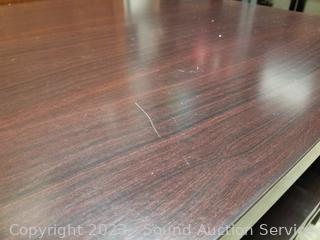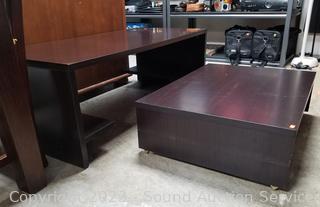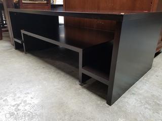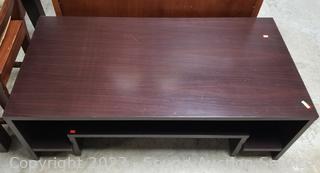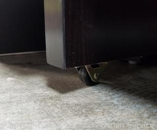 Lot Details: Some dings, scratches, finish peeling on the underside, missing some hardware (cams underneath). 16.5" H x 47" x 23".