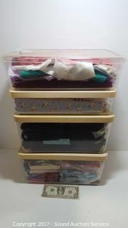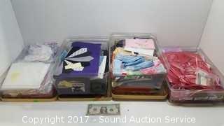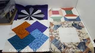 Lot #0111: 4 Small Totes Loaded w/Quilt Blocks & Fabric