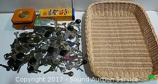 Lot #0167: Basket Loaded w/Keys, Camera & Holland Lock Box