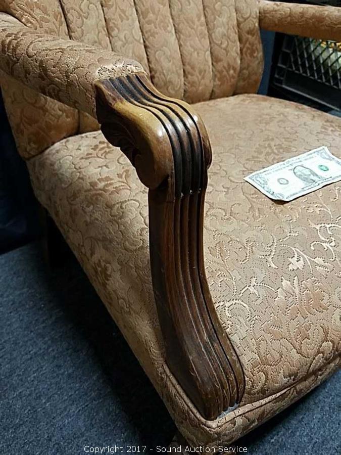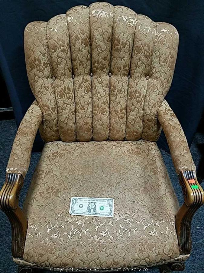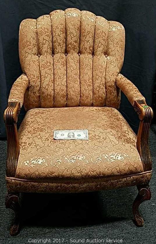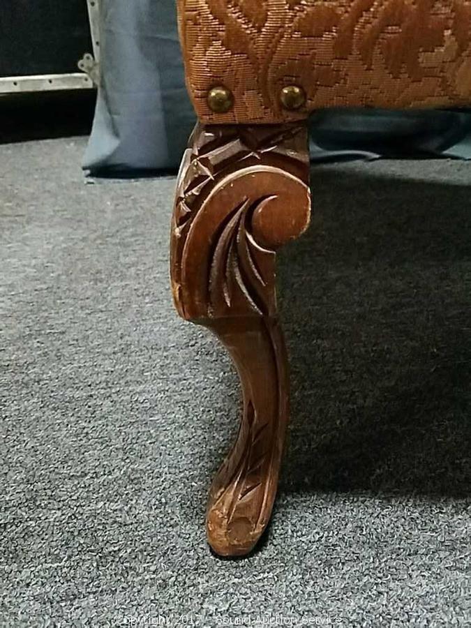 Lot #0043: Beautiful Vtg. Carved Cabriole Leg Arm Chair